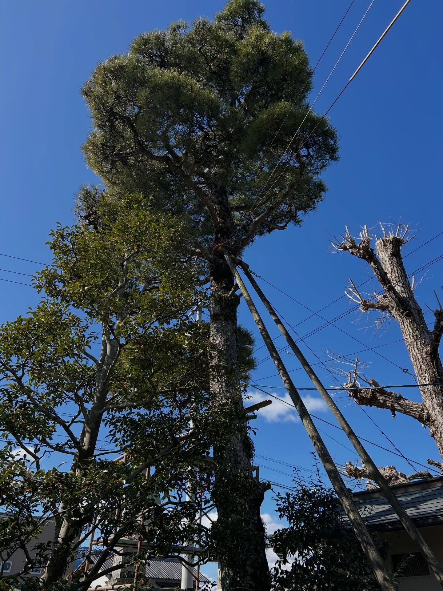 お寺さんの高い松の木を剪定しましたお寺さんの高い松の木を剪定しました 高さが15メートルぐらい有り 下枝が10メートルぐらい無いので 結構スリル満点でした