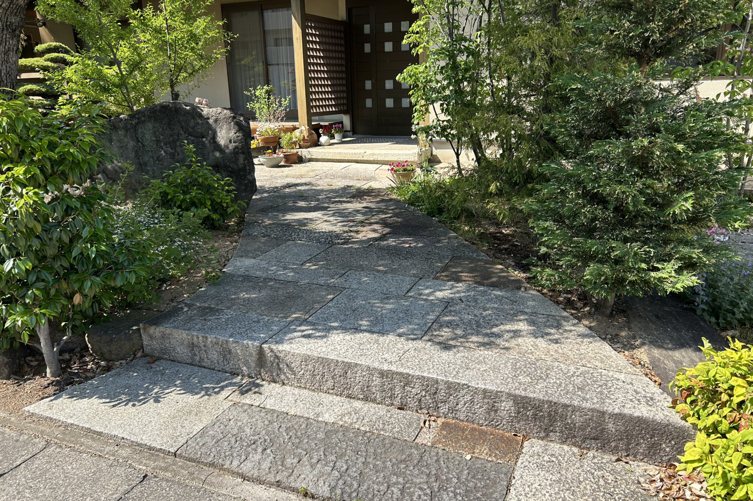 庭づくりの他、樹木整枝、害虫駆除、除草剤散布などの庭園管理、石、竹垣、コンクリート、外構工事まで、住まいの外まわりを一貫して対応できることが私たちの強みです。