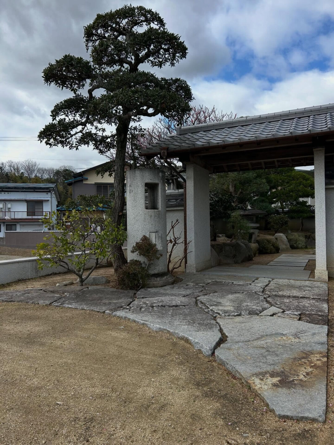 香川県の庵治石のアプローチと 香川県の庵治石のアプローチと 珍しく大きな縮緬ウマメカシと 円石柱の門前の設え スキル 投稿日 2026年3月24日 ← 25年前作庭時に植えた松の老木を移植する為に2人で一日がかり やっと暖かくなり →